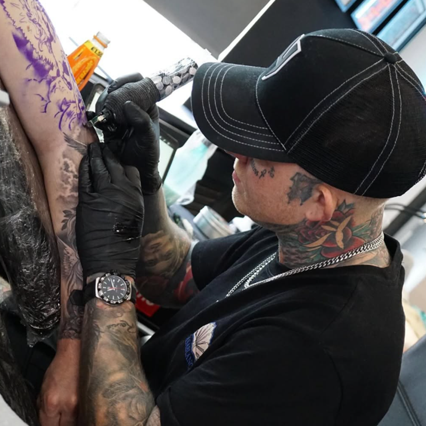 Blackwork tattoo artist and proud owner of Sixty Ink! Regularly touring with big-time bands with his infamous Tattoo Tours.